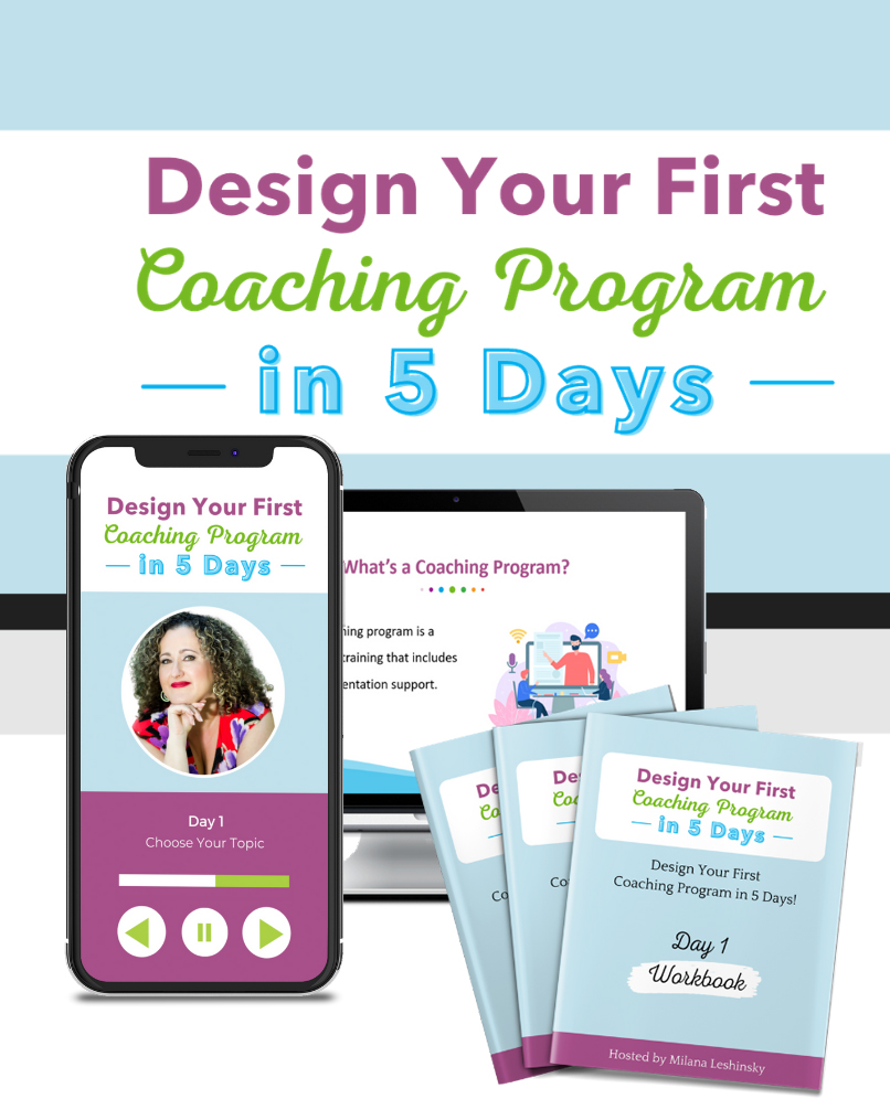 GIFT + RAFFLE from Milana Leshinsky: Get “Design Your Coaching Program in 5 Days” & You Could WIN Coaching Software